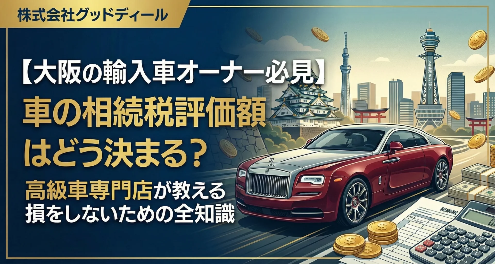 こんにちは。大阪を拠点に輸入車・高級中古車の販売・買取を一貫して行っている株式会社グッドディールです。 私たちは日々、関西全域で数多くの高級車を取り扱っていますが、相続に際して「車の価値」を正しく把握できていないために、損をしてしまったり、税務上のトラブルに巻き込まれたりするケースを多く目にしてきました。